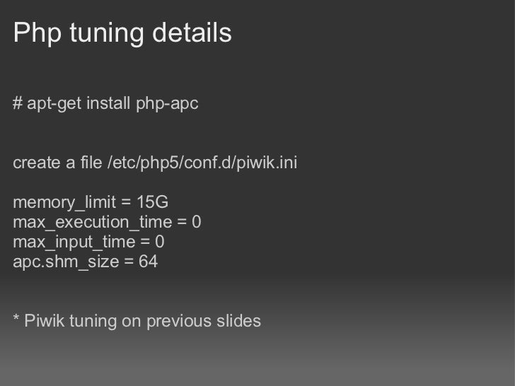 APC OpCode Caching, but never as a data cache! Always install and enable it! Share the code base for multiple sites Shared cache only with mod_php5 and PHP FPM ... Access This Document